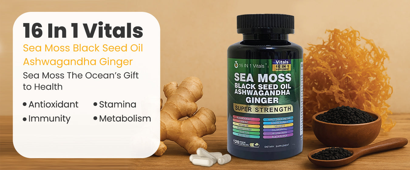 Support Your Body and Mind with Sea Moss Black Seed Oil, Ashwagandha, and Ginger All in One Powerful Blend
