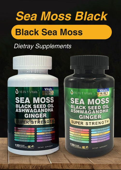 Sea Moss and Black Seed Oil help boost immune function while fruits and veggies capsules support energy, skin health, and digestion.