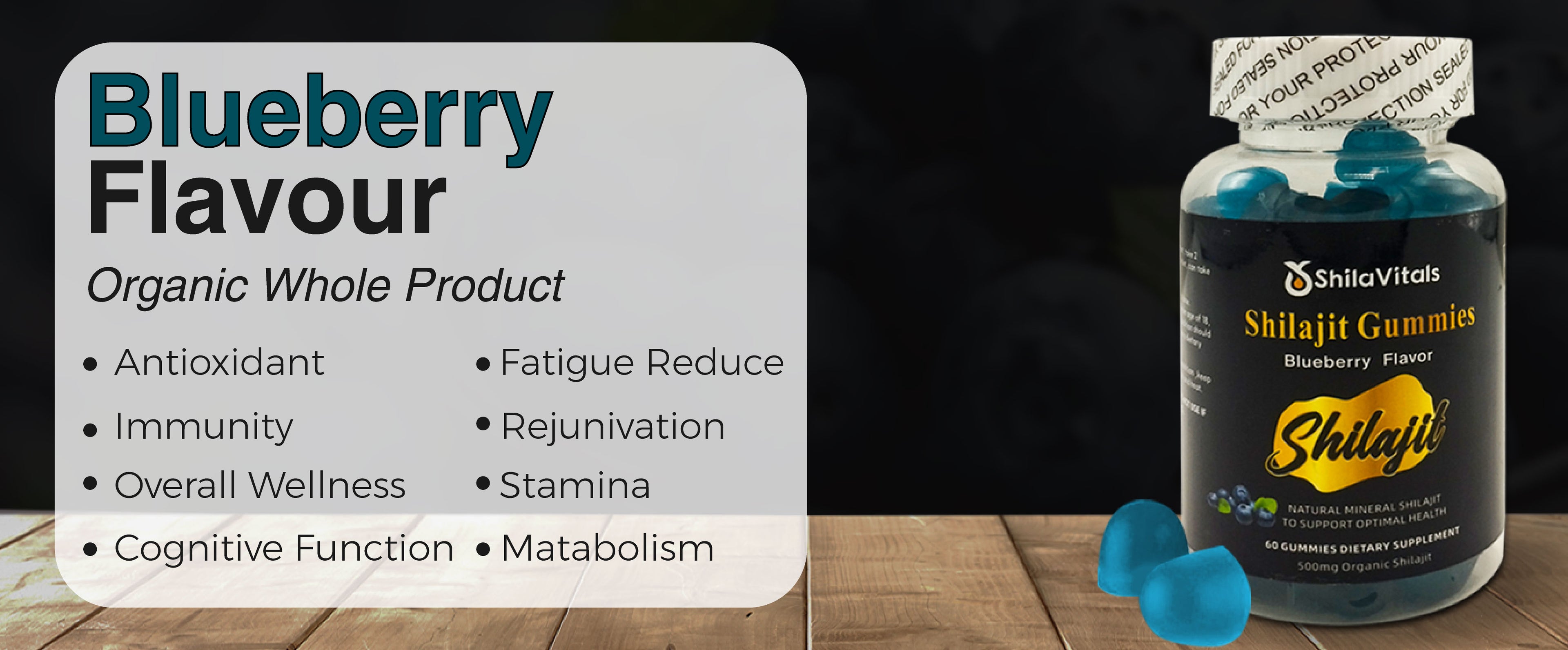 ShilaVitals Organic Shilajit Blueberry Gummies – 500mg Natural Wellness Support