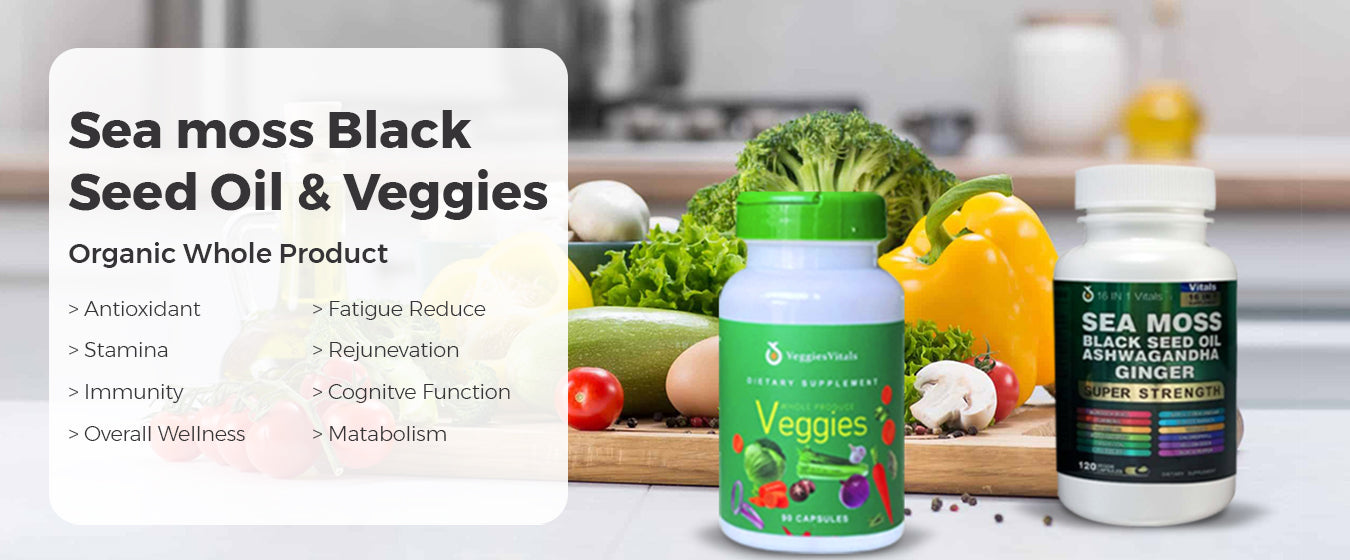 Sea Moss Black Seed Oil Ashwagandha Ginger & Veggies Supplements (Pack of 2)